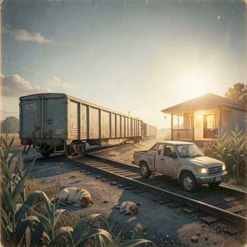 country, Warm country band with brushed drums, upright bass, and twangy telecaster; male vocals sitting close and storytelling, Verses stay mellow and conversational, chorus opens with stacked harmonies and a train‑groove shuffle, fiddle fills the gaps, Easy, front‑porch mix with a playful, toe‑tapping swing, beautiful