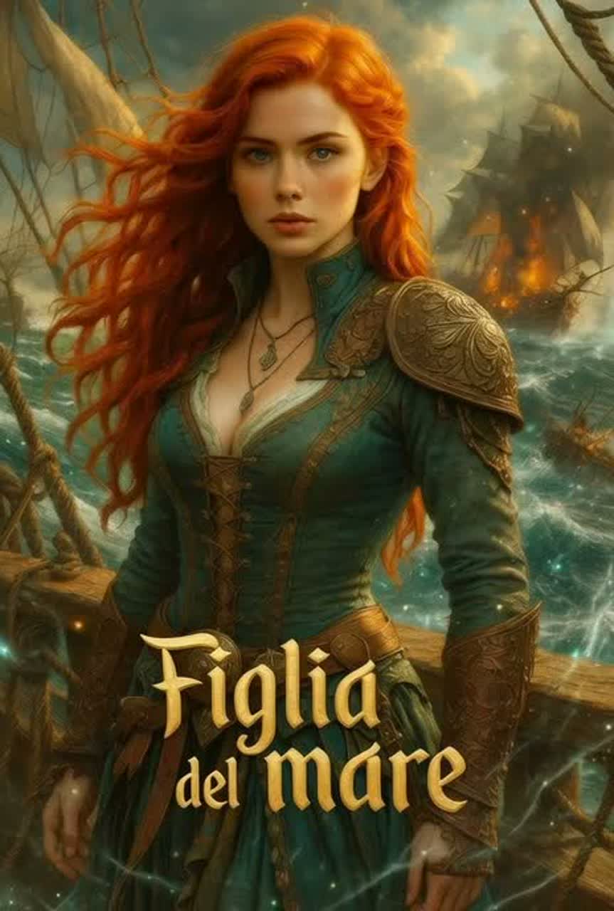 Epic power metal song, in the symphonic fantasy style of Rhapsody of Fire and Twilight Force, Female lead vocals with operatic tone, supported by heroic male backing choirs, Full symphonic orchestration — strings, brass, choirs, harpsichord, and thunderous double-bass drumming, Tone is epic, majestic, and emotional, combining fantasy imagery, stormy seas, and magical destiny, Tempo: 170 BPM, Key: E minor, Time Signature: 4/4, Include powerful chorus harmonies and a neoclassical guitar solo bridge