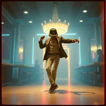 A lively french house at 125 BPM anchors the song with pumped drum in 4-on-the-floor kick, paired with playful upright bass riffs and hip hop flavor, Winding Arabic oud lines and synths in traditional scales enrich the landscape, Darbuka accents enliven the pulse, Unexpected zany breakdowns with quirky samples bring comic bursts, and layered female Arabic ethereal vocalises float as a cinematic ambient texture throughout