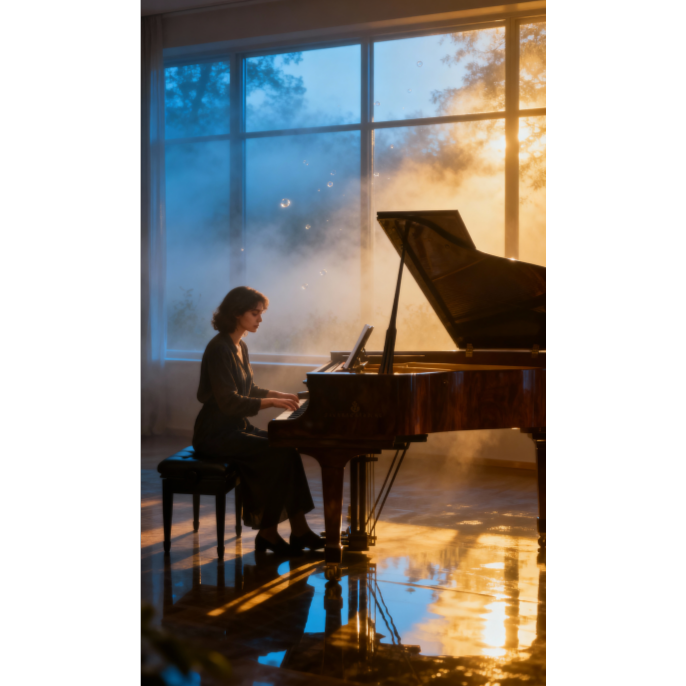 impressionist piano solo, romantic nocturne, 60BPM, solo grand piano, soft pedal throughout, slow evolving tone, inspired by Debussy, Ravel, and Chopin, delicate phrasing, subtle crescendo, cinematic reflection, blue to gold tone palette, emotional transition, dawn ambience, ‑guitar, ‑drums, ‑percussion, ‑bass, ‑cello, ‑violin, ‑strings, ‑flute, ‑synth, ‑pad, ‑vocals, ‑choir, ‑beats, ‑rhythm section, ‑field recording, ‑electronic elements, ‑ambient noise, ‑cinematic drums, ‑orchestral instruments, ‑sound effects