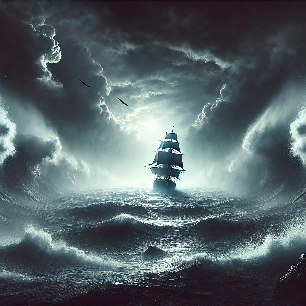 Create a melodic instrumental track blending darkwave and progressive ballad styles, Use deep, atmospheric synths, slow-building harmonic progressions, and haunting ambient textures, The mood should feel cosmic, tragic, and majestic — evoking the image of a lone spirit navigating between light and darkness, Include layered pads, subtle guitar or piano motifs, and a steady, emotional rhythm, Ideal tempo: 65–80 BPM, Think of a fusion between Dead Can Dance and modern cinematic ambient composers like Ben Frost or Clint Mansell, The music should evoke themes of entropy, cosmic balance, and metaphysical longing, supporting powerful poetic lyrics in Russian about light, shadow, and eternal equilibrium