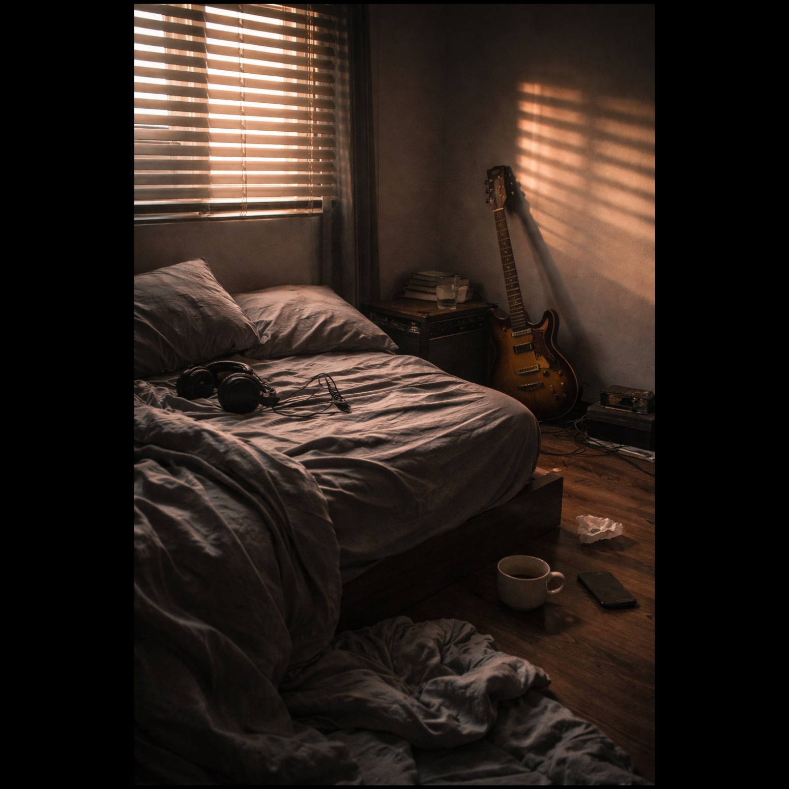 A dark, grounded EDM and alternative pop fusion built on a slow, heavy bassline and live-feeling drums at 88 BPM, Warm Rhodes piano chords anchor the track—rich, slightly overdriven, carrying the weight, Deep analog synth pads swell underneath, with layered vocal chops and breathy background vox drifting in and out like ghosts, A clean, vulnerable male pop vocal sits intimate and close—breathy, broken, confessional, with subtle rhythmic ad-libs and quiet gasps that add soulful flair, Electric guitar appears rarely, as single sustained notes that hang in the air, The production is wide but empty, with natural room reverb that feels like being alone in your own space, Sub-bass rumbles low but doesn't pulse—it just sits there, heavy, Lyrically, it captures the gut-wrenching moment you realize someone is disappointed in you—the silence, the shifted eyes, the weight of not being enough, Simple, Sad, Heavy, Soulful
