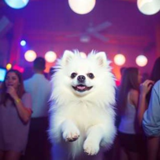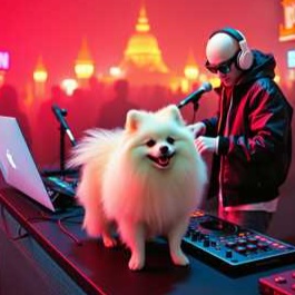 goa psytrance, infectious edm, india dance beat, electronic club party, bounce drop, mushroom dj, western asia, white pomeranian