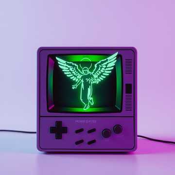 game boy hip-hop, demonic final boss, 16-bit angel choir, game console rap, epic cinematic, energetic game, arcade master beat, godly echoes, 90s gaming tournament