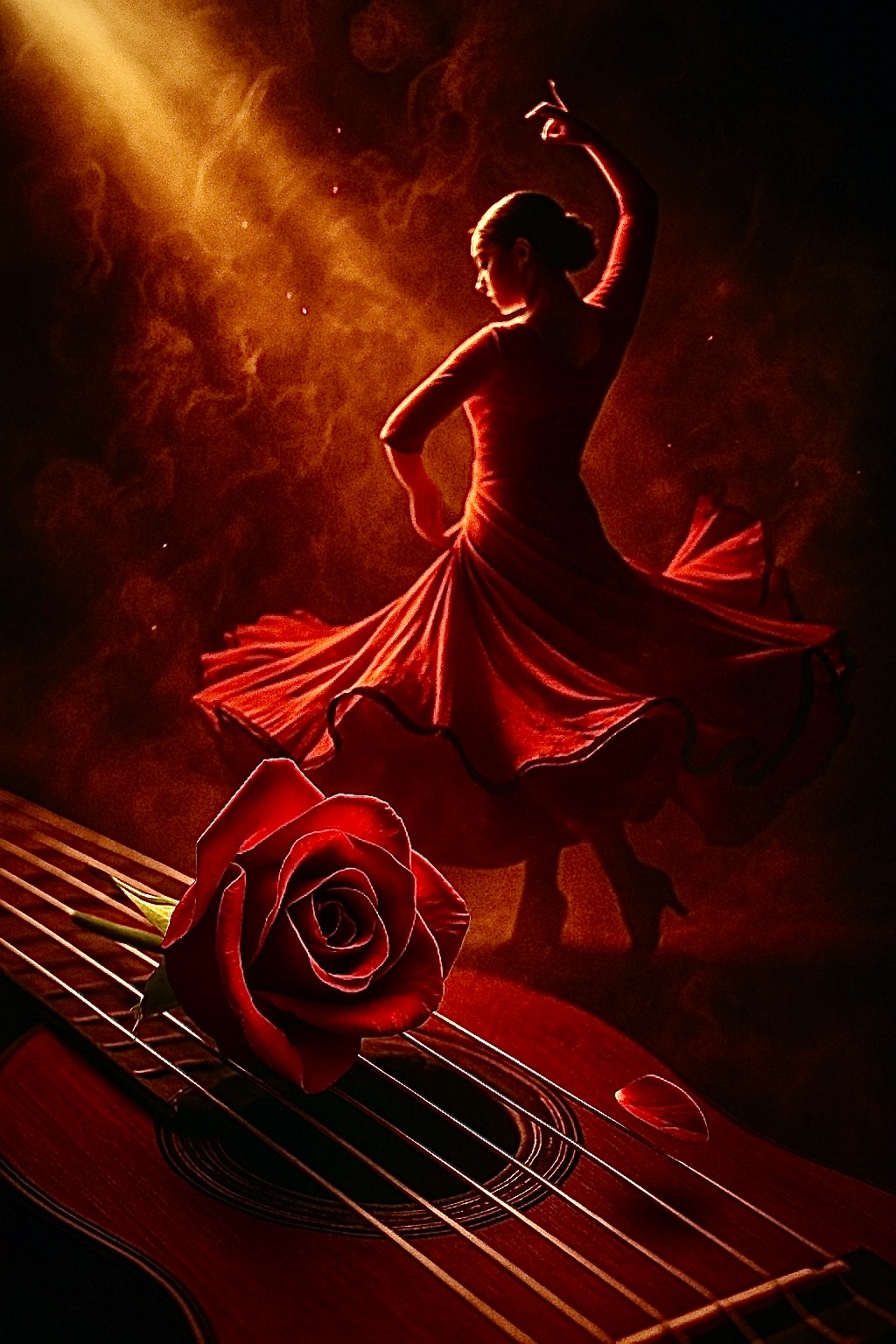 • Nylon-string Flamenco guitar – percussive, with rasgueado strums and lyrical melodic runs