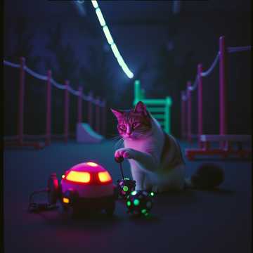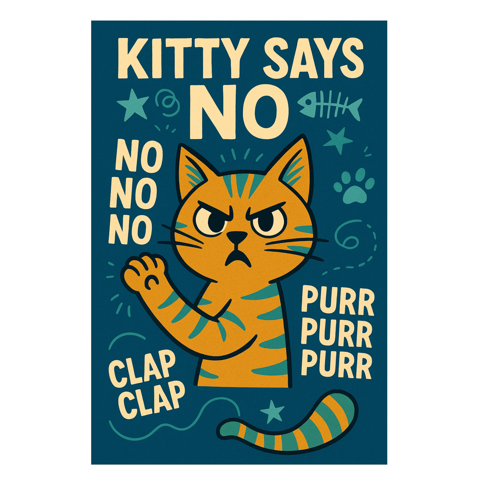 Dark Funk-Jazz Rock with Playground Stomp Rhythm, Tempo around 95–100 BPM, groovy and tight, Instruments: funky electric bass, syncopated jazz-rock drum kit, handclap and foot-stomp percussion layered with snares and toms (clean, not chaotic), distorted electric guitar riffs for punch, toy piano or xylophone accents for playful edge, Add glitch FX (error beeps, digital stutters) and processed “meow/purr” vocal samples for dark humor, Vocals: playful female lead, half-sung half-chanted, with occasional layered gang-style shouts (simulated using instruments or effects, not children’s voices), Mood: mischievous, sarcastic, and catchy—like a spooky nursery rhyme turned into a tight funk-rock anthem