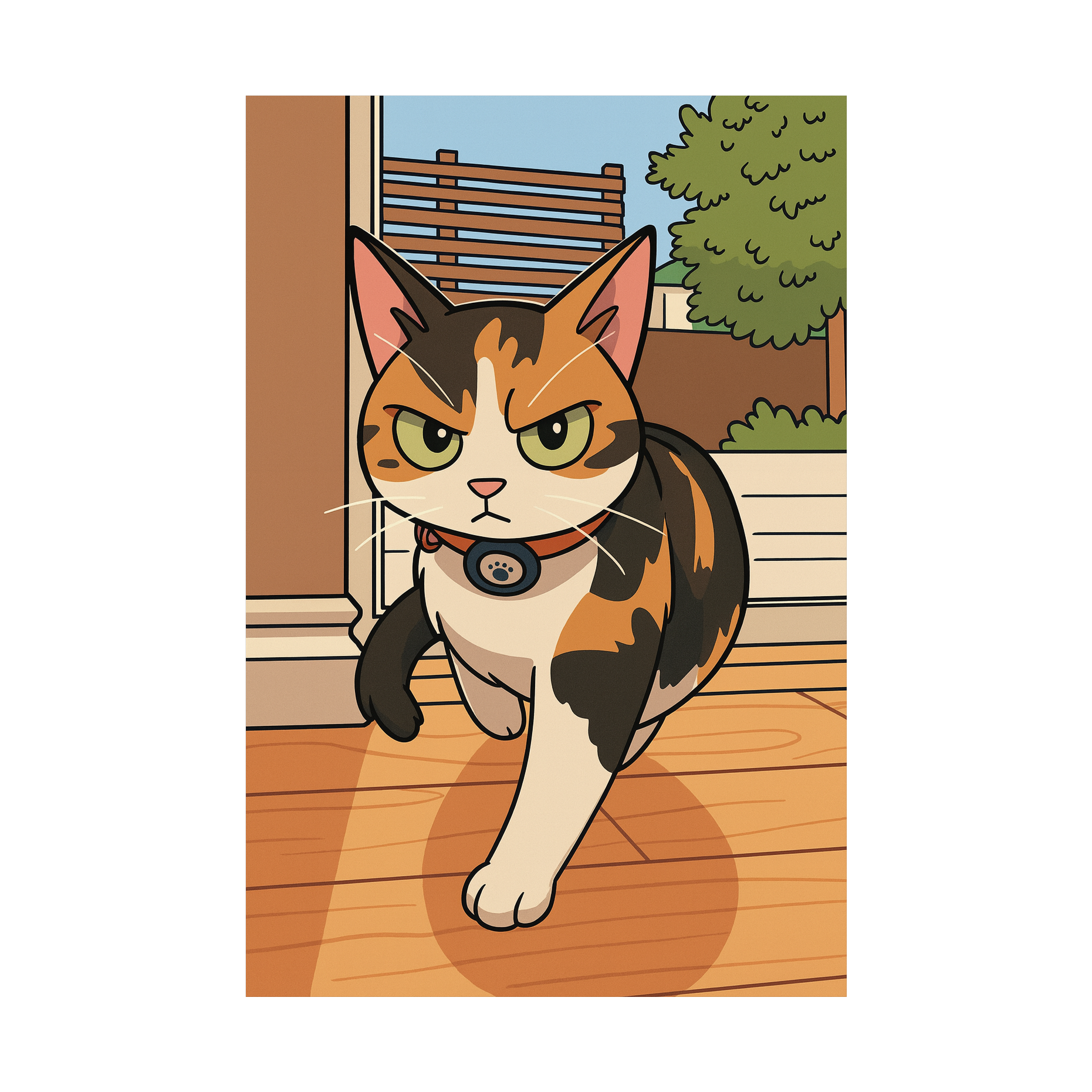 A soft, playful bedtime folk song in D major and 6/8 time, featuring fingerpicked acoustic guitar and toy-like instruments, The mood is warm, cozy, and a little silly — like a fluffy kitten who takes its nightly patrol duties way too seriously, tiptoeing between family bedrooms, trying to decide who needs cuddles more, The guitar is gentle and bouncy, with a swingy 6/8 rhythm, Add soft wooden percussion (like knocking paws or tapping floorboards), pizzicato strings, and subtle melodica or toy piano for a whimsical, childlike touch, The arrangement should feel like a storybook — soft, curious, occasionally confused, Include little pauses and tempo rubato moments that feel like the kitten stopping to think: “Wait… grandma’s still up, but baby is asleep… hmm… maybe I should go left first?”