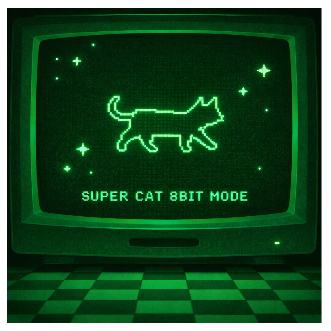 MSX AY-3-8910 PSG minimal chiptune, Only 3 square-wave voices + 1 noise channel; extremely limited polyphony, Sparse, dry, simple melodies with rapid arpeggio chords, Very few simultaneous notes; empty, thin retro sound, Bit-crushed, low-resolution, naive game-console tone, Chip bass uses a single square-wave; percussion is pure noise, No modern layers, no pads, no synth stacks, Energetic SUPER CAT vibe but intentionally primitive and minimal