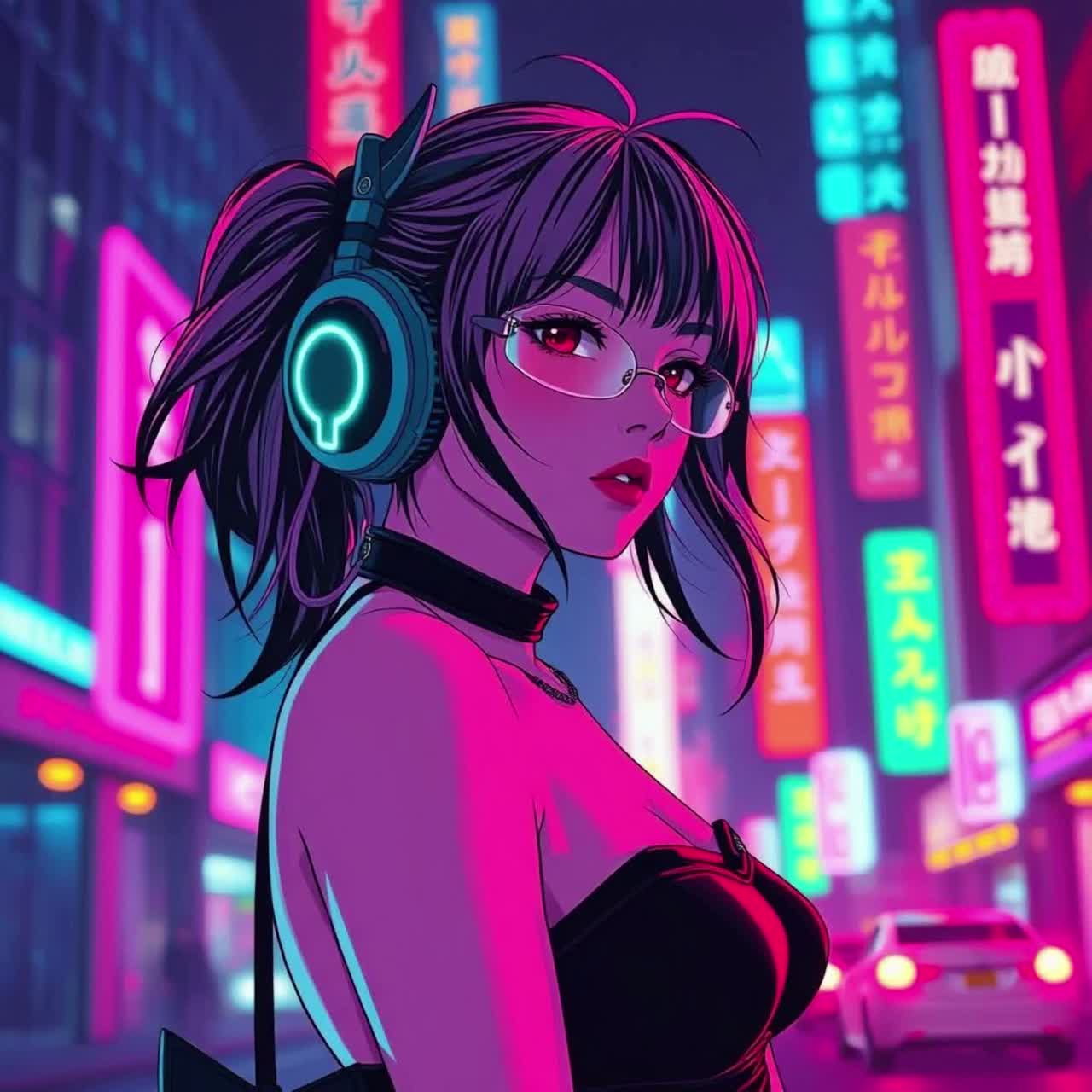 K-POP × Djent × Electronic, bright, cyber, futuristic pop with seductive edge, Heavy low-tuned djent riffs blended with glossy dance beats, Sharp synth leads, glitch textures, digital sparkle, hologram shimmer, Vocal: sexy and cute high-teen female vocal, confident, playful, teasing, Breathy whispers, soft moans, and sly attitude mixed with clear upper-register singing, Femme-fatale sweetness with dangerous charm, Mood: 22nd-century cyber idol, neon city at midnight, chrome lights, bio-mechanical elegance, Electric glamour, latex-shine aesthetic, holographic heels, confident strut, Music: fast dance rhythm fused with metallic guitar stabs, deep sub-bass pulses, synthetic heartbeats, Occasional whispered ad-libs (“ah…”, “baby”, “come on”) but not overused, Overall: stylish, sensual, and powerful, A futuristic pop diva with a mischievous smile and razor-sharp groove