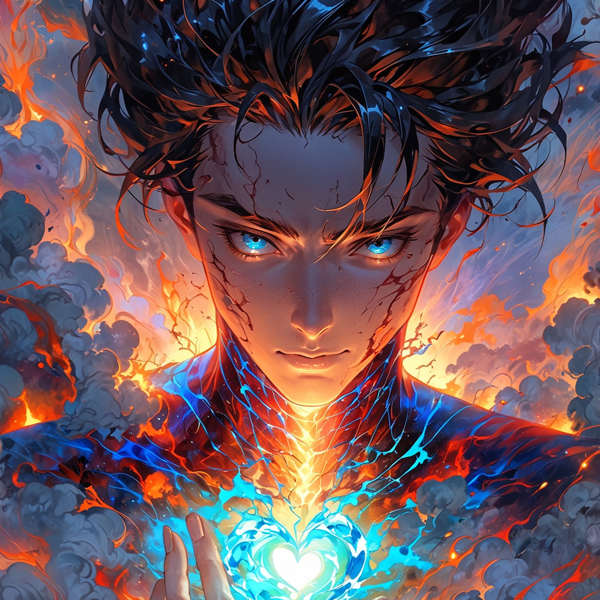 A symphonic metal production combining distorted electric guitars, double-kick drums, and soaring operatic vocals with a full neoclassical string orchestra, Sweeping violins and dramatic brass punctuate the choruses, while dynamic timpani and intricate guitar solos add power and technical flair throughout