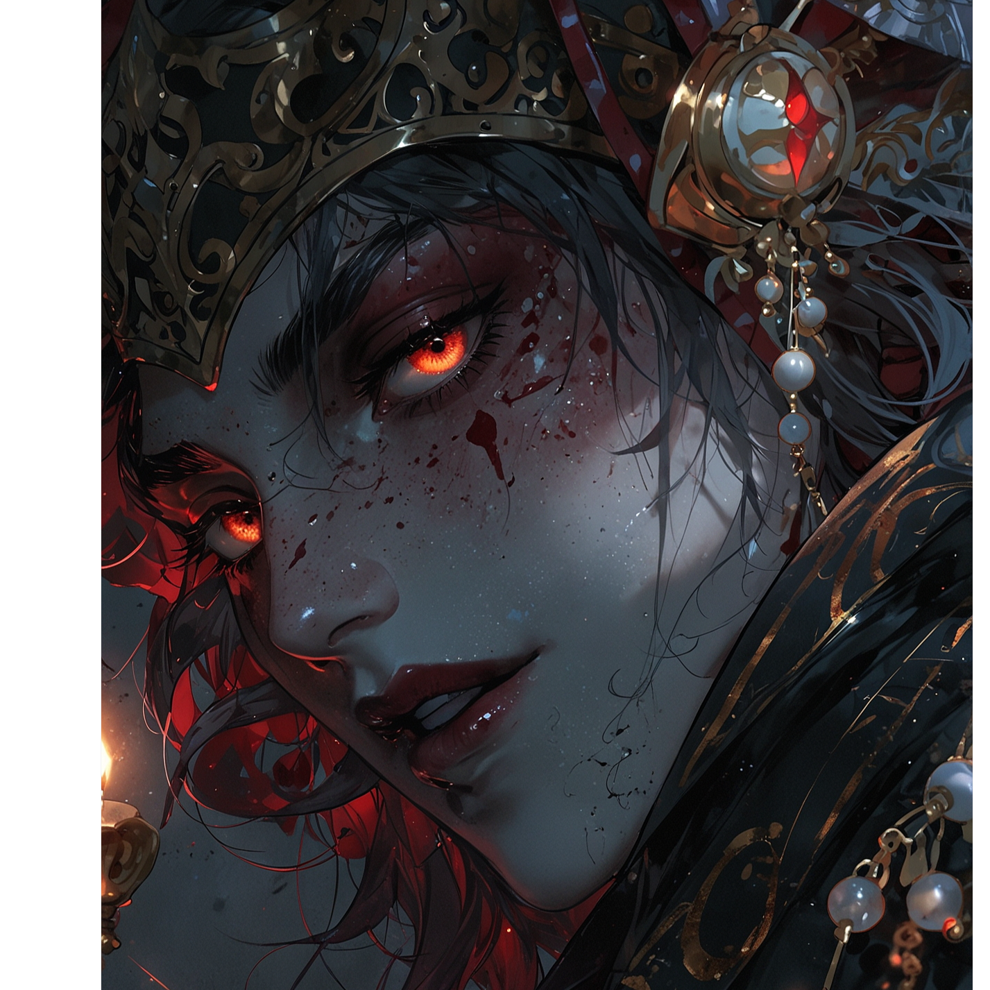 Opens with brooding strings and eerie choir pads weaving suspense, Swing jazz drums and upright bass pulse under smoky brass, while electric guitars and symphonic metal elements crash into the chorus, Cinematic crescendos blend with dissonant piano, crafting a haunting, dramatic tapestry