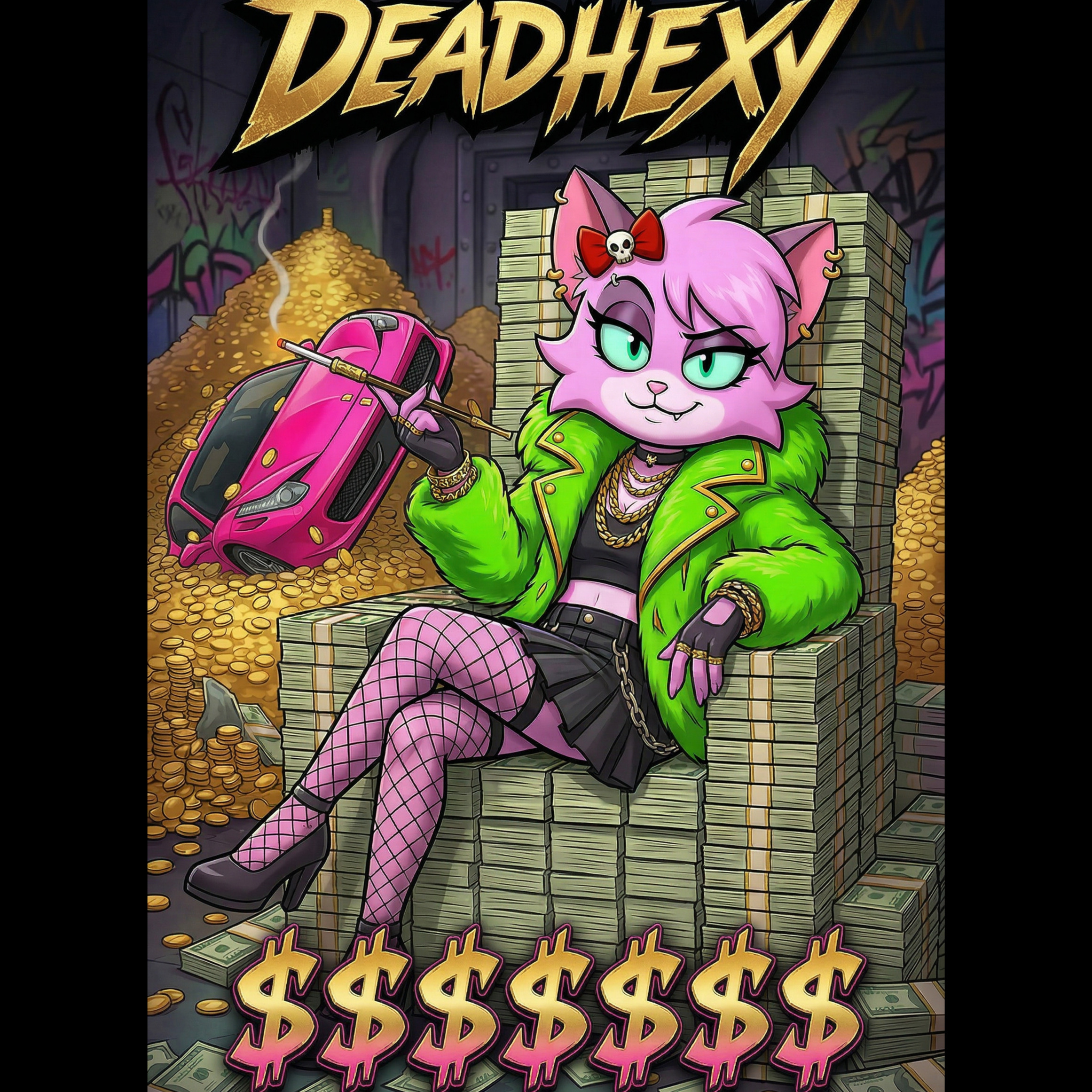 High-energy industrial hip-hop track featuring aggressive female vocals and a heavy, distorted electronic production, The song is set in a 4/4 time signature at approximately 105 BPM, The instrumentation is dominated by a thick, overdriven synth bassline and crunchy, lo-fi drum machine patterns with prominent, snapping snares and metallic percussion hits, The vocal delivery is rhythmic and rapid-fire, utilizing a bratty, confident tone with frequent pitch-shifted layers and distorted vocal effects, The structure consists of a repetitive, anthemic hook driven by a descending minor-key synth motif, interspersed with dense, syncopated verses, Production elements include heavy compression, glitchy transitions, and spatial reverb on vocal ad-libs to create a dark, urban atmosphere