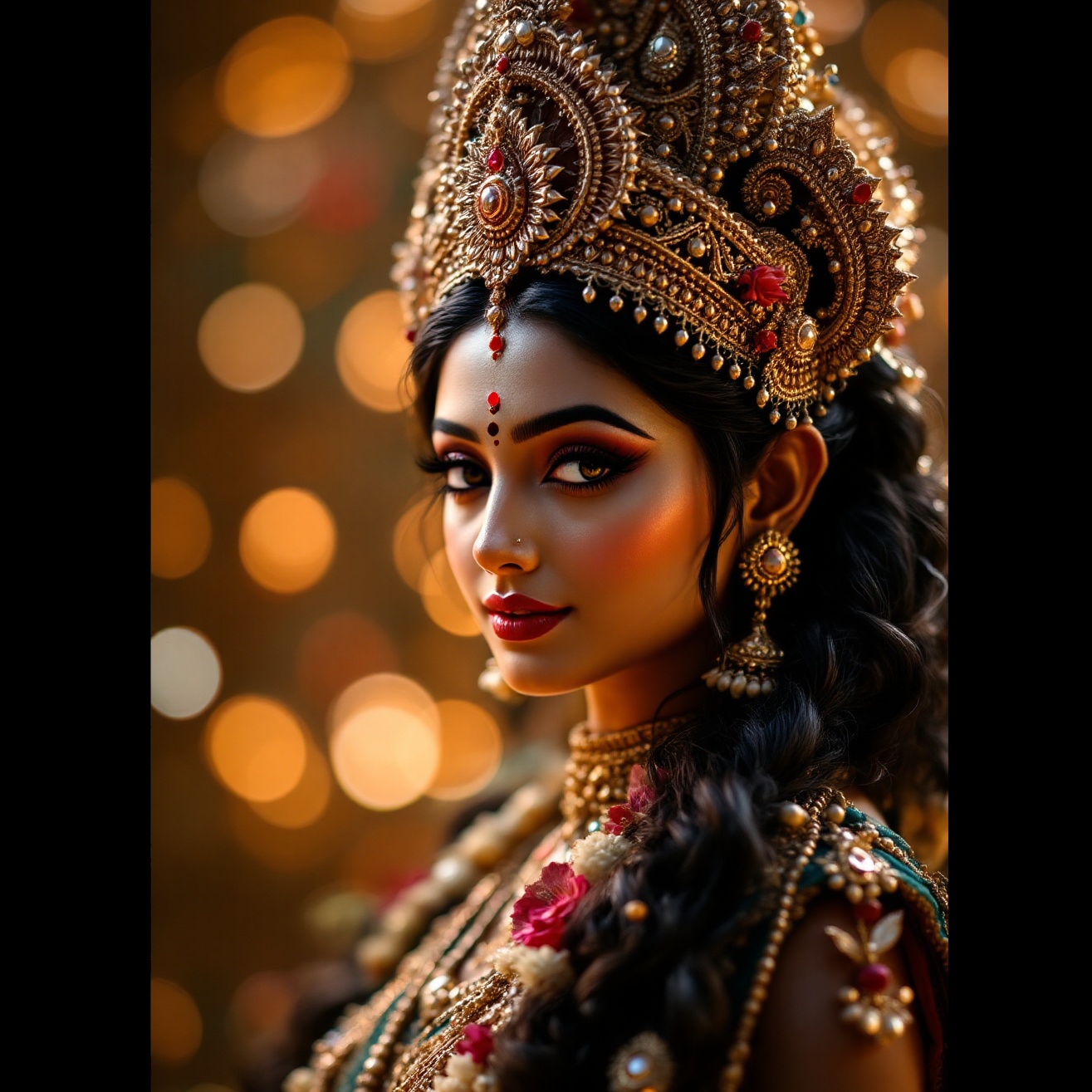 A gentle and joyful melody in the style of Indian classical or folk music, for an international audience, soft harmonies with instruments such as flute, bell chimes, and violin, bright, warm, smooth, with expressive female vocals, pronunciation following Sanskrit rules, natural and easy for listeners, calm rhythms and harmonies for universality, Intro — soft with flute and bell chimes, creating tenderness and joy; verses — repeating themes of sweetness and beauty, gentle melodic development, female vocals; instrumental interludes — short phrases on violin or flute between verses; ending — gradual fade-out with the same instruments for a sense of completion