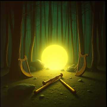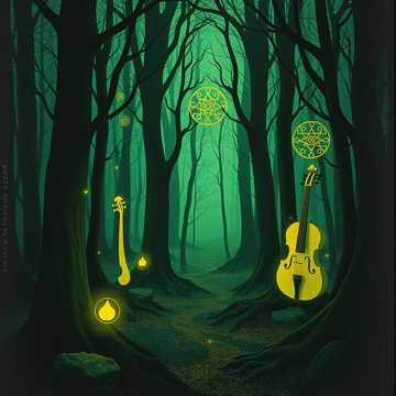 Female vocal, Cerdd dant style, lyrical, soft and ethereal, breathy and expressive, slow and dreamy at the start (adagio, meditative), gradually accelerating towards lively dance (presto), Celtic Harp (arpeggio, glissando), Fiddle (sustained then fast reel), Concertina (soft chords, ornamentation), Crwth and Rebec (sustained harmonic support), Tin Whistle (short melodic fragments), Lyra and Cruit (delicate plucked notes), Bodhrán (subtle pulse then energetic), strings ensemble (thin then full with divisi, crescendos), light woodwinds initially, gradually adding full woodwinds, brass, timpani, percussion, mixed choir harmonies in latter section, melody follows lyrics and dance rhythm, Dorian/Mixolydian modes in slow section, major key in fast section, gentle to full dynamics, mystical Celtic forest mood at start, joyful festival mood at climax, smooth transition from serene Cerdd dant to Jig/Scottish Snap dance, rhythmic motifs echoed throughout, expressive phrasing, hand bell, ‑Piano solo, ‑Piano accompaniment, ‑Piano Concerto, ‑Concerto, ‑drums, ‑electric guitar