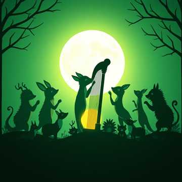 * Instruments include harp, fiddle, tin whistle, and light percussion