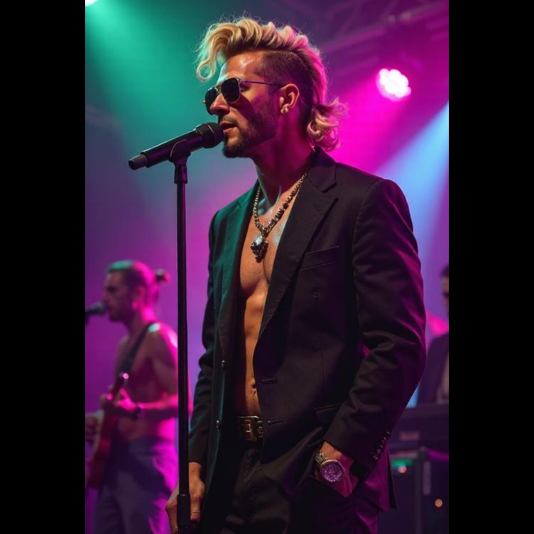 Italo Disco Nocturnal, Eurodance Edm, Synthpop Europop, Uplift Emotional Eurodisco, Love Melodic malevoice, 80s Punk, driving 80s new wave synths and crisp EDM percussion, Tubular bells and major-key pads evoke nocturnal romance as dual melodic male Latino- vocals—mixing falsetto and R&B phrasing panning effect vocals
