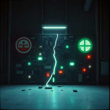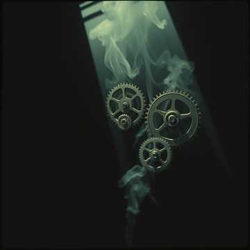 heavy distortion, horror rap, unsettling vocal manipulation, dark, rap, eerie soundscapes with mechanical and metallic undertones, industrial, layered effects