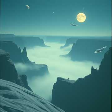 Slow-motion ambient drift built from shimmering pads, modulated delay swells, and distant, muted pulses instead of defined drums, Reverb blooms into a vast canyon space with subtle night-field recordings—crickets, low animal calls, wind, Gentle filter sweeps carry the energy from sparse, glassy tones into denser, star-sprinkled textures, then back to near-silence, Male or female vocals optional as wordless chants far in the background, minimal, beats, ambient