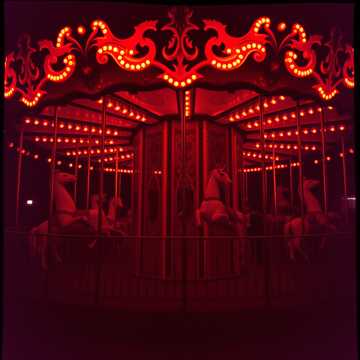 theater organ, toy piano, upright bass, brushed snare, steam calliope emulator, high piccolo, circus bells, honky-tonk piano, chain-rattle FX