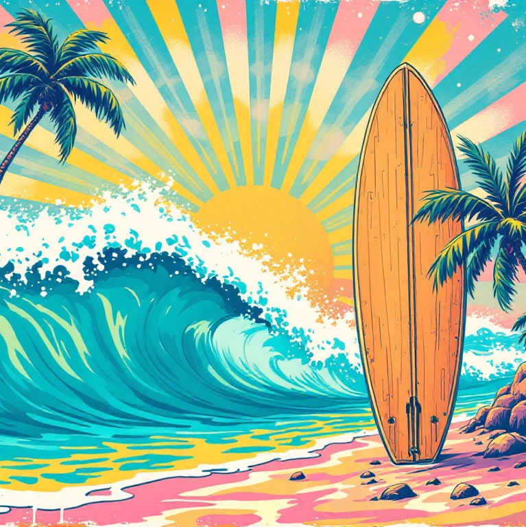Authentical surf rock 60s, Twangy, reverb-drenched electric guitars, double-picked melodies, driving punchy drums, walking thumping bass lines, Fast and energetic beat, 170 bpm, ‑pop, ‑jazz, ‑hard rock, ‑latino, ‑post rock