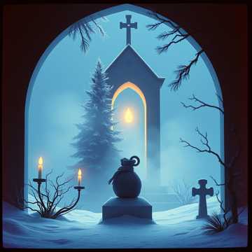 A dark ambient church bells piece with a slow attack and long decay, Horror, Creepy, Dark, Deep Male vocals, Halloween, A Christmas epic-orchestral psychobilly fusion with symphonic choir and the violins strings, BPM: 63