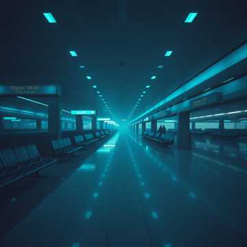 A cold darkwave–ambient fusion blending breathy female vocals with detuned harmonics, reversed ambience, submerged reverb tails, and slow pressurized drones, shaped around empty-airport acoustics where footsteps echo unnaturally far; production uses sparse pulse patterns, decayed intercom textures, fungal-organic crackles, and drifting mechanical hums as rhythmic accents, building tension through gated reverb choruses and underwater-filtered breakdowns, maintaining an uncanny clean-liminal mood while the mix subtly collapses inward like a dream refusing to release the sleeper