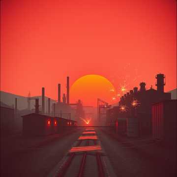 Heavy Russian rock, 98–120 BPM, D minor, Start with gritty, industrial drums inspired by Atomic Heart battle music—tight, punchy kick and snare patterns, distorted percussion, and deep, aggressive bass, Layer in Soviet-style synths, raw distorted guitars, balalaika accents, and industrial noise, Vocals: rough, spoken or shouted, with choral gang shouts in the chorus, Themes: science, space, struggle, labor, light and darkness, Structure: