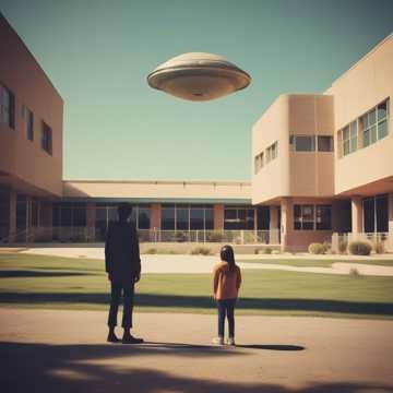 Over sixty students reported seeing a silver craft land in a field near the school. They described occupants dressed in all black that exited the silver object