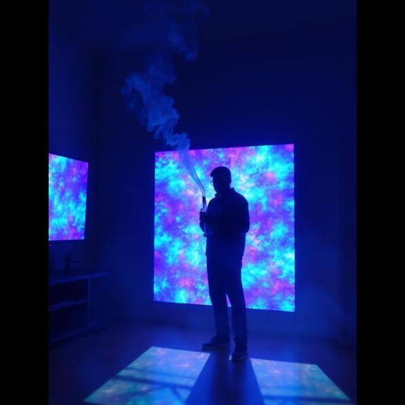 A chill psychedelic electric rock track fuses grunge and space rock textures, Verses ride a thick, laid-back bassline and steady drums with washy guitars, Choruses expand with fuzzy distortion, swirling synths, and glitch effects that stutter and warp both guitar and vocals for a surreal, spacey vibe, ‑haunting