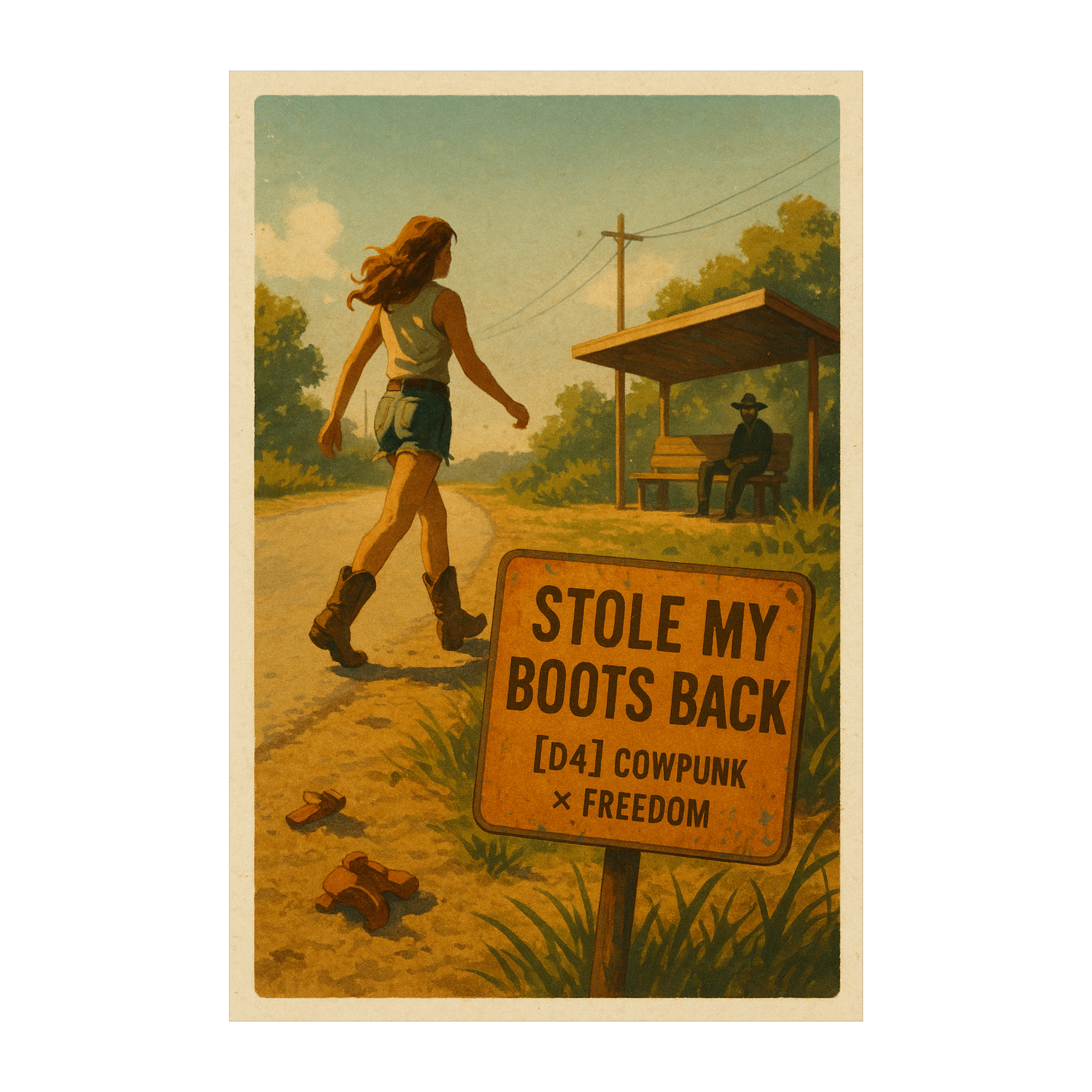 Rowdy cowpunk anthem blending punk aggression with country and bluegrass grit, Fast tempo (~160 BPM) with distorted guitars, slap bass, twangy Telecaster licks, and stomping drums, Add banjo, harmonica, and occasional fiddle for rustic bite, Call-and-response gang vocals in the chorus, Mix of shouted punk-style vocals with a Southern drawl and gritty spoken lines, Include a whistled break and a breakdown section with minimal instrumentation (banjo + voice), Slightly chaotic, rebellious energy throughout, like a bar brawl turned road trip, Rough edges, sweaty attitude, and defiant flair, Ends with harmonica and vinyl crackle for vintage feel