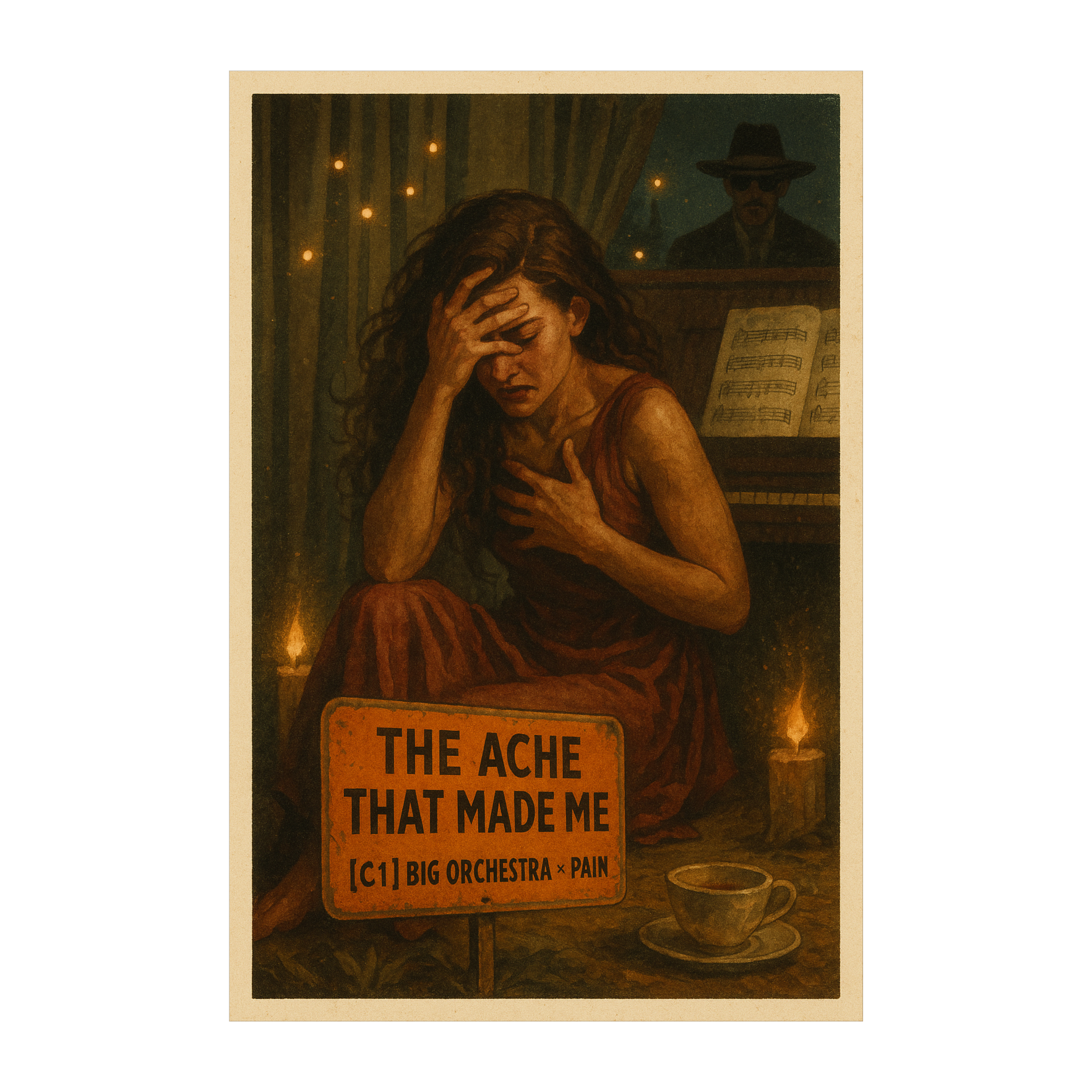 Cinematic big orchestral ballad blending Northern Soul and Chamber pop with emotional intimacy and sweeping grandeur, Tempo about 80 BPM, Starts minimal with solo piano and soft strings, gradually building into full orchestra with soaring brass, deep cellos, and dynamic timpani, Dramatic crescendos and expressive phrasing, Rich harmonic progressions and evolving textures, Incorporate solo violin, harp glissandos, low string swells and big timpani percussion, Female vibrato vocals, prolonged, voice moves from whispery and close-mic in verses to powerful, anthemic delivery in the chorus, Include vocal harmonies and countermelodies in climaxes, Emotional arc should mirror a journey from quiet suffering to triumphant self-realization, Mood: introspective, painful, redemptive, powerful