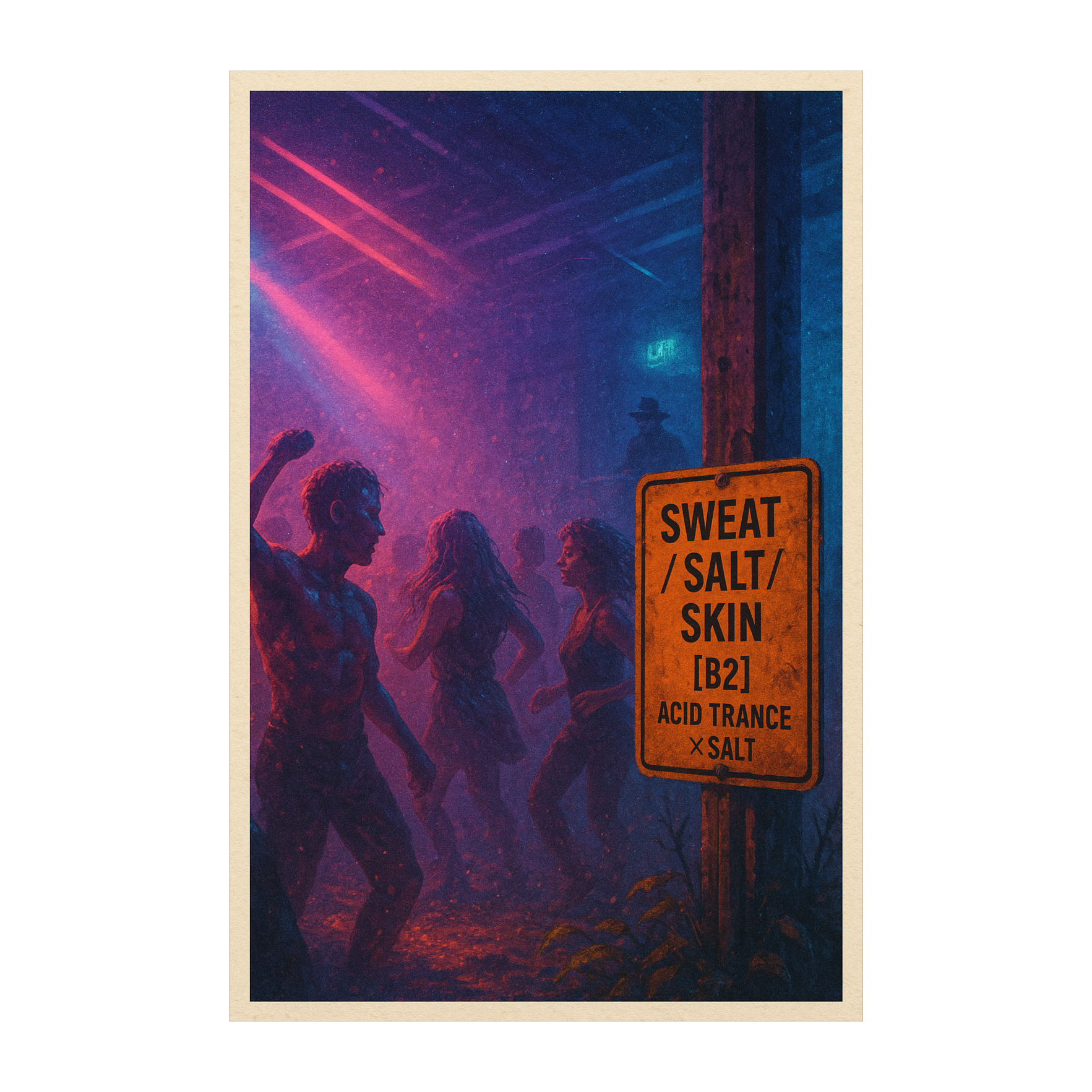 Bass-heavy acid trance fused with hypnotic techno, Tempo around 132 BPM, Repetitive, sensual groove with layered synth arpeggios, pulsing kick, and sizzling hi-hats, Include psychedelic vocal chops, reversed textures, and ambient noise swells, Add sultry vocal delivery with mantra-like, chopped phrases, moaning and whispered harmonies, Use stereo-panned delay effects and subtle pitch warps for trance-inducing feel, Breakdown should feature glitchy decay, whispered vocals, and a haunting spoken-word passage through a radio filter, Overall vibe is hypnotic, sweaty, clubby, and immersive — a looping sensory trance