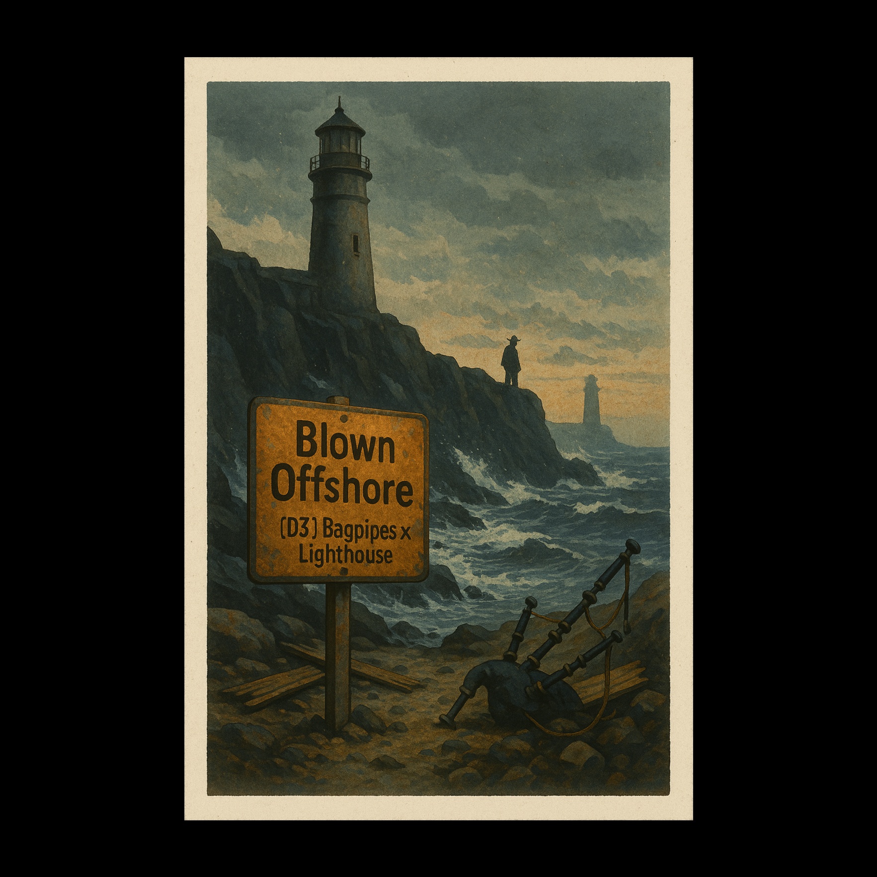 A bagpipe driven, slow, moody Celtic folk-rock track with emotional tension, Bagpipes are the central melodic element — both droning and soaring, Blend acoustic guitar, fiddle, bass, and bodhrán or soft toms for a storm-weathered folk texture, The arrangement should rise and fall like waves: quiet verses with ambient sea sounds and sparse percussion, then louder, crashing choruses with full instrumentation, Include a bagpipe solo or instrumental breakdown, Vocals: male, expressive, weathered, shifting between soft storytelling and emotional outbursts, Overall mood: windswept, betrayed, oceanic