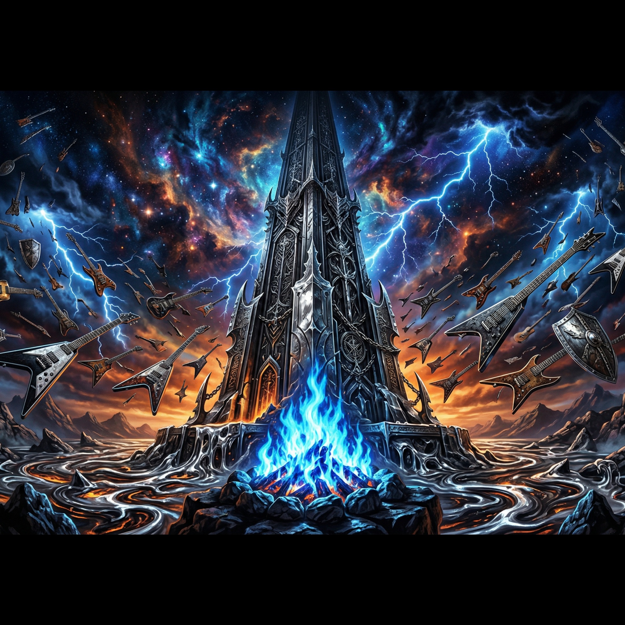 Definitive High-Fidelity Heavy Metal Anthem, 1990s-2026 European style, monumental and complex, Instrumentation: Triple guitar assault with harmonized twin leads and crushing chugging rhythms, thunderous double-bass drumming with organic resonance, clanking "Steve Harris" style bass guitar, majestic pipe organ and orchestral choir layers, Vocals: Extraordinary operatic tenor with a gritty edge, glass-shattering high screams, massive "stadium-style" multi-tracked gang vocals and classical choirs, Structure: Orchestral overture, high-speed galloping verses, soaring melodic pre-chorus, massive triumphant chorus, extended technical guitar and bass solo duel, epic slow-tempo bridge, and a final speed metal explosion, Tone: E Minor / D# Minor, Key: E Minor, Vibe: Triumphant, eternal, heroic, absolute, Keywords: Ultimate Metal, Iron Monolith, Twin Harmonies, Galloping Riffs, 440Hz, Pure Steel, Technic