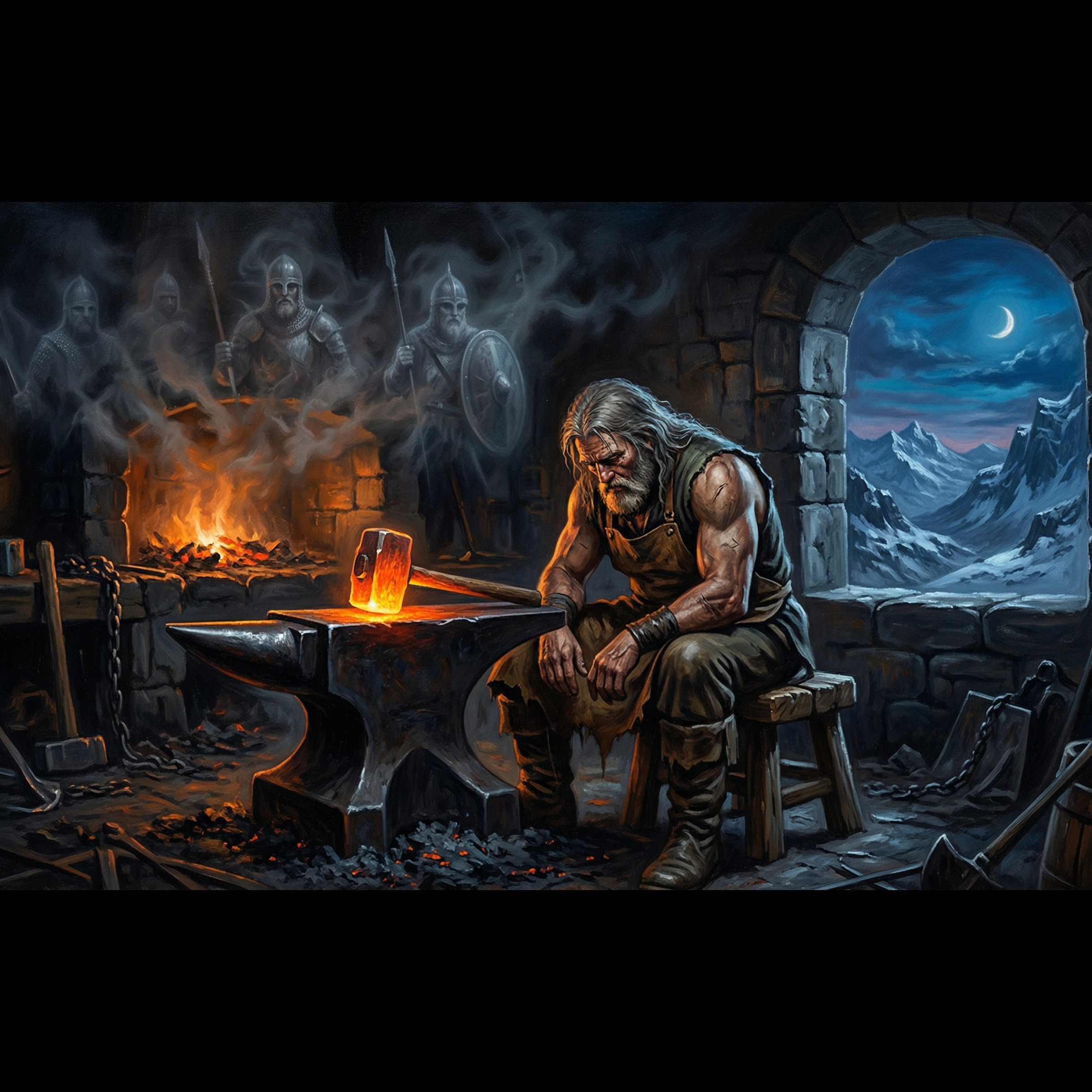 Power Ballad, True Metal style, 1990s European underground, Instrumentation: Melodic 12-string acoustic guitar intro, haunting flute and cello accents, transitioning into heavy distorted power chords, epic slow-tempo drumming with massive reverb, emotive soaring guitar solos, Vocals: Passionate baritone-to-tenor delivery, starting with a whisper and ending with powerful gravelly belts, cinematic male choir backing, Structure: Atmospheric acoustic verse, building pre-chorus, explosive emotional chorus, long melodic guitar solo with twin-harmony climax, Tone: A Minor / C Major, Key: A Minor, Vibe: Melancholic, nostalgic, heroic, stoic, Keywords: Bardic, medieval, iron and flame, tragic glory, 90s production, organic sound, Technical: 75 BPM, high dynamic range, warm analog tube saturation, wide soundstage