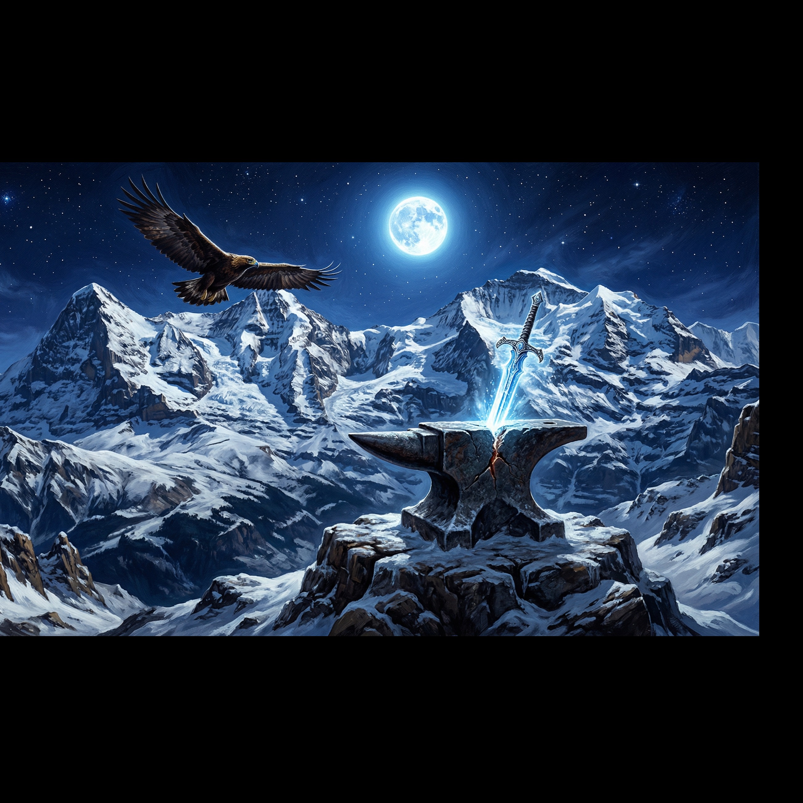High-fidelity Traditional Heavy Metal, Austrian underground style, late 1990s aesthetic, melodic and majestic, Instrumentation: Precise harmonized guitar leads, crisp rhythmic chugging, warm and prominent bass guitar, organic drums with a sharp snare and bright cymbals, Vocals: Powerful melodic tenor, clear pronunciation, soaring vibrato, layered vocal harmonies in the chorus reminiscent of European power metal, Structure: Melodic twin-guitar intro, mid-tempo galloping verse, soaring pre-chorus, massive anthemic chorus, technical melodic guitar solo with neoclassical touches, Tone: E Minor / G Major, Key: E Minor, Vibe: Heroic, alpine, stoic, vibrant, traditional, Keywords: Austrian steel, mountain majesty, melodic heavy metal, 90s production, crystalline sound, Technical: 135 BPM, high dynamic range, polished mix, analog warmth