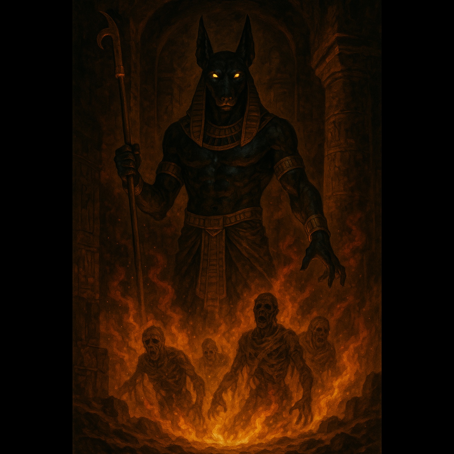 Compose a dark, gothic power metal anthem in the style of theatrical ritual, Tempo should be around 105 BPM with a strong, marching rhythm, Start with eerie church bells, desert wind, and Gregorian-style chants, Introduce dramatic organ chords, palm-muted guitars, and choir-backed riffs, Use Latin phrases in choral layers to invoke a dark sacred feeling, Verses should be deep, chant-like vocals with driving riffs, Pre-choruses must rise with tension using Latin chants, strings, and snare rolls, The chorus should be grand, melodic, and anthemic—memorable and hymn-like, Add a baroque-influenced organ or choir bridge and a fierce solo with Egyptian-style melodies, End with a dramatic fade into wind, organ, and Latin echoes, Must feel like a dark mass for a god of the dead—majestic, ominous, and divine