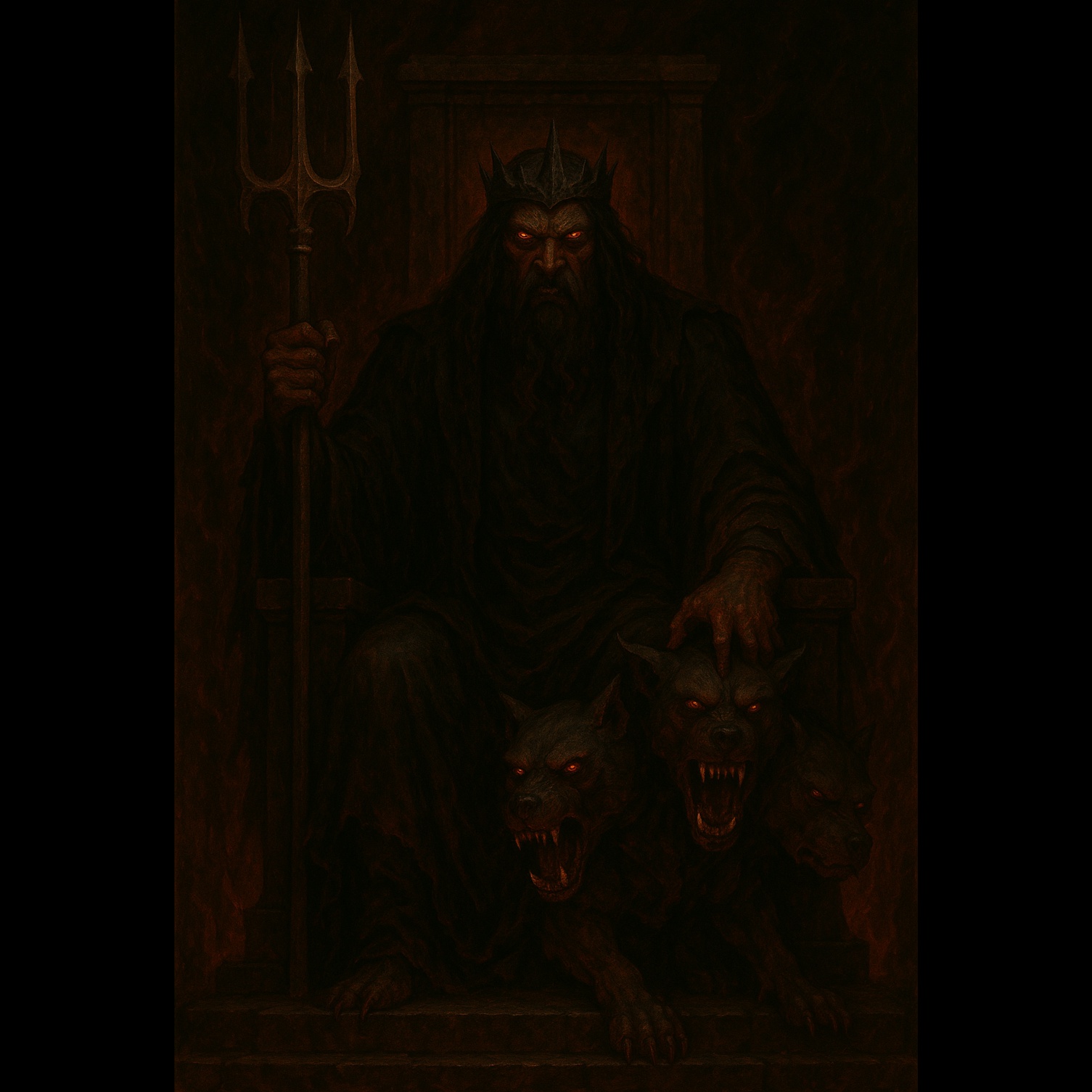 Compose a dark, majestic power metal anthem in the style of a gothic cathedral hymn, Begin with tolling bells, thunderous organ chords, and a slow march rhythm to establish the regal, funereal mood of the underworld, Guitars should be heavy and ominous, tuned down for weight, using harmonic minor and Phrygian dominant scales to conjure dread and divine power, Layer in male choirs chanting Latin or Greek-inspired phrases, with orchestral flourishes (cellos, brass, taiko drums) supporting a thunderous rhythm section, Verses should be paced like a slow procession, while choruses explode with choir harmonies and dramatic key changes, invoking the unstoppable force of Hades, Include a theatrical organ solo and a spoken or whispered bridge for a ritualistic feel, End with a slow fade into silence — like the closing of a tomb