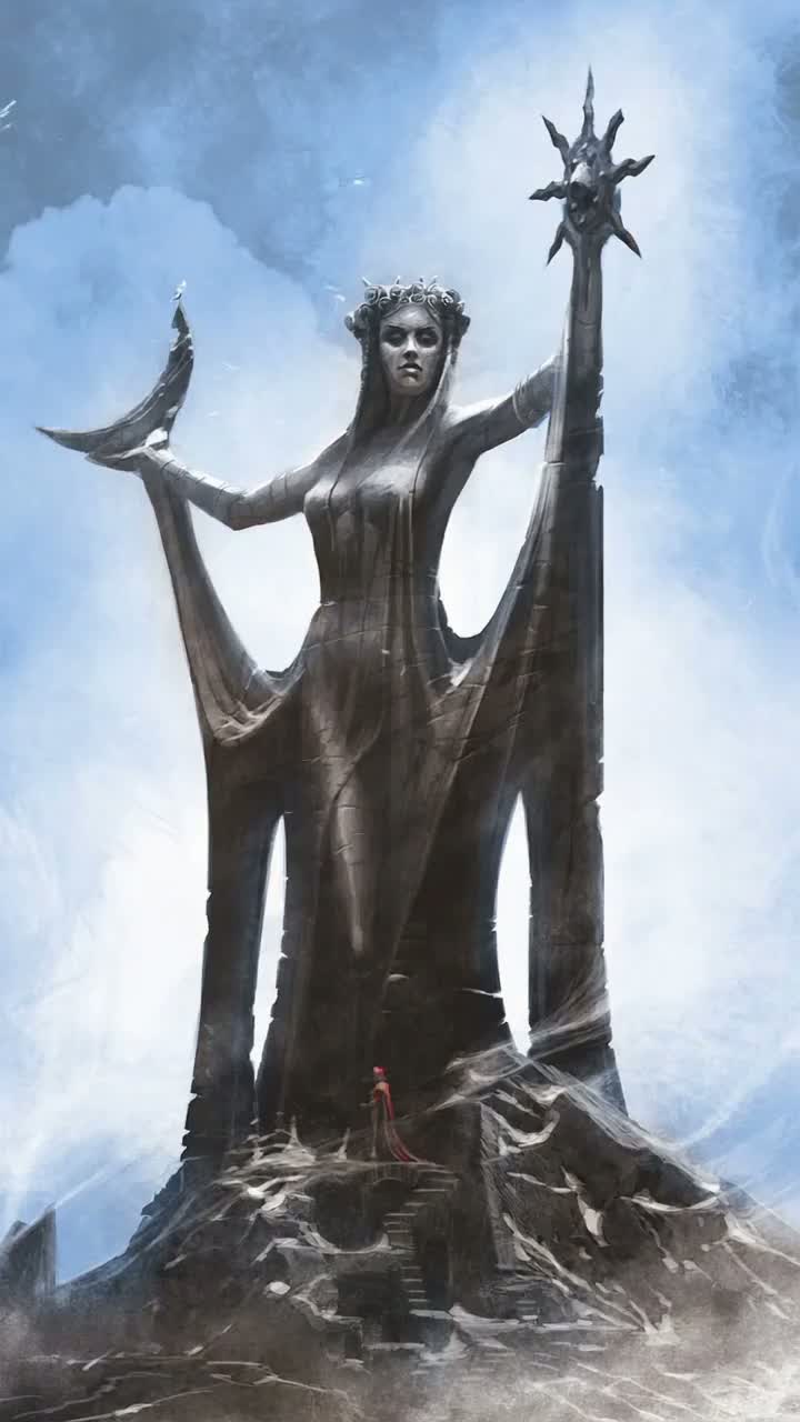 dark fantasy epic, gothic folk metal, haunting female vocals with choral echoes, slow heavy drums, atmospheric synths, decaying reverb, eldritch horror vibe