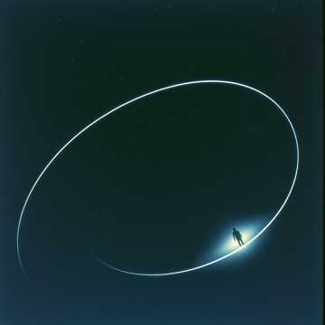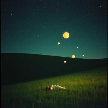 The song begins with rich orchestral strings and soft acoustic guitar arpeggios beneath prominent, steady electronic drums, Atmospheric synths and nuanced effects add a cosmic layer, A baritone male delivers slow, spoken-word vocals, slightly melodic and narrow, with airy reverb throughout, Classical textures blend with pop production for a spacious, calming sound