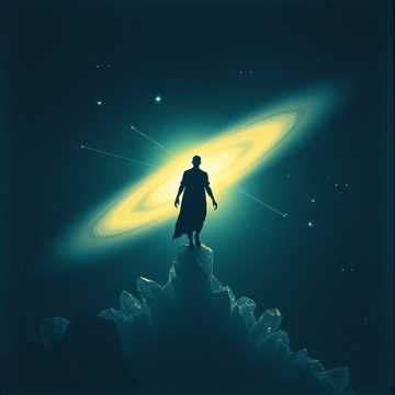 Create a song about the expanse of our galaxy with orchestral and pop / classical / pop influences and special effects with various instruments, I should also be in a way relaxing and soothing, A cappella male vocal performance with a single baritone voice, The vocal delivery is spoken word with a melodic inflection, not fully sung, The tempo is slow and deliberate, The vocal range is narrow, focusing on the lower-mid register and should contain a small amount of echo and reverb