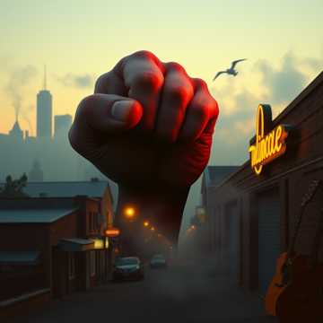 Modern garage acid blues, Heavy Gritty soul grooves, modern production, organ chords, rotary speaker, tape echo, distorted garage-rock riffs, punchy Motown horn stabs, swaggering funk rhythms, stomping backbeats, smoky gravel-toned black male vocals, dramatic call-and-response hooks, vintage-tinged power, hard-hitting dynamic swings, cinematic bluesy tension, 70s rock and roll, rock organ, garage rock, big muff, fuzz, bigsby, spring reverb, harmonic tremolo, ride pattern