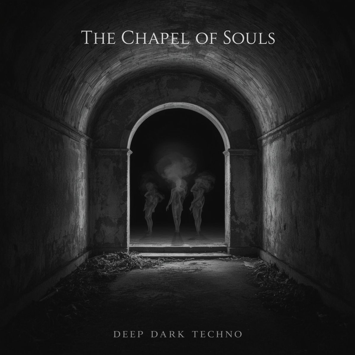 6-7 minute, 145-150bpm dark techno bunker track with pounding/stomping 909 kick or a pounding Dubstep kickdrum with slight distortion, rolling hi-hats, distorted pitching raw 303 acid bassline, gothic style chants (ahhh, ohhh, wordless soft ethereal vocal tones), Cathedral reverb on the chants, layered with eerie drones, Build and release structure: long intro with drones and chants, drop into heavy pitching acid groove, breakdown with only chants + acid line that pitches up and down with resonance/cut off, then climax with full pounding techno bunker, No lyrics, only chant-like sounds
