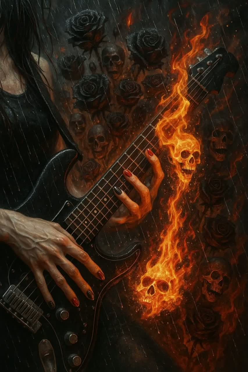 A gothrock opera track erupts with wailing, vibrato-bent electric guitar solo, Cello supported by dramatic piano, and intense cello and violin, Intricate guitar shreds cut through a dense symphonic orchestral backdrop, The arrangement surges with harmonic builds, rapid shifts, and crushing emotional contrasts: abrupt drops, soaring peaks, and layers of pain-laced chaos driving each transition, Opens with Epic Electric Guitar wailing vibrato bend into orchestral piano, violin, cello & heavy on guitar solo as the lead emotional opening Guitar Solos Leads with a gothrock Opera orchestral symphonic backing, electric guitar present carrying throughout, rapid (TheDooo+Brendon Small inspired) shredding w vibrato bends, Painful, chaotic, gut-wrenching, Violins, cellos, piano, layered harmonic builds, abrupt tempo drops, emotional highs, A gothrock opera track erupts with wailing, vibrato-bent electric guitar solo, supported by dramatic piano and intense cello and violin, METAL AS FUCKπ€πΈπΉπ»