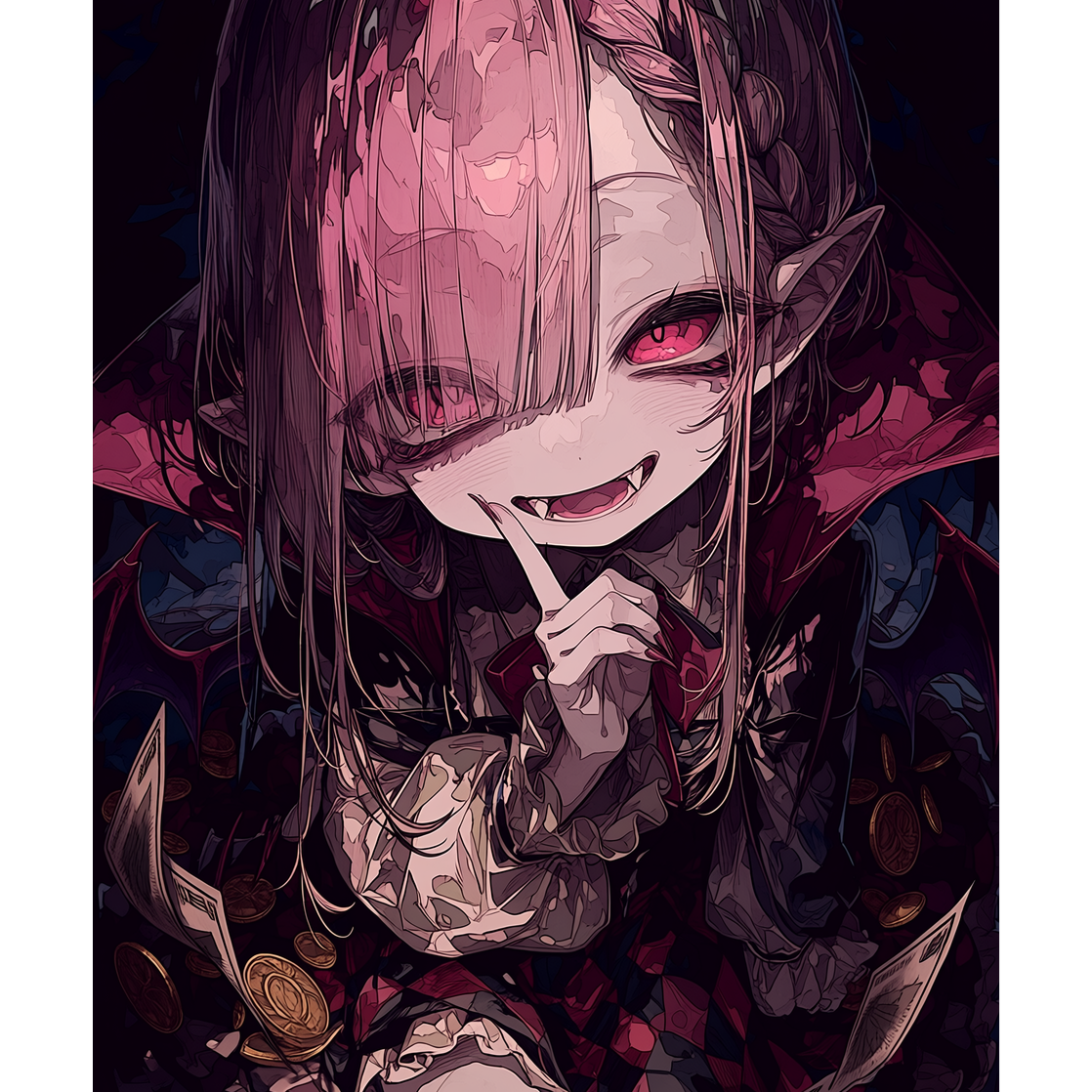Vocal: Female vocal, devilish-cute and teasing tone, playful and sly delivery with calm confidence, detached yet seductive phrasing, clear and crisp articulation, stable pitch, single consistent voice