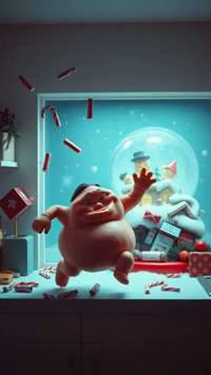 Hilarious British Christmas novelty pop with maximum cheeky energy - think Benny Hill meets Christmas panto, Bouncy piano, comedic brass honks, and ridiculous sound effects throughout, Tempo around 150 BPM for proper slapstick chaos, Features exaggerated vocal delivery with knowing winks, dramatic pauses, and over-the-top backing vocals reacting to the carnage, Packed with silly sound effects - chocolate wrappers, sneaky footsteps, dramatic gasps, belly rumbles, Think classic British comedy records with festive mayhem - completely daft, utterly charming, guaranteed to make you laugh out loud, It's naughty, it's cheeky, it's absolutely bonkers Christmas fun, ‑shimmer, ‑noise, ‑scratchiness