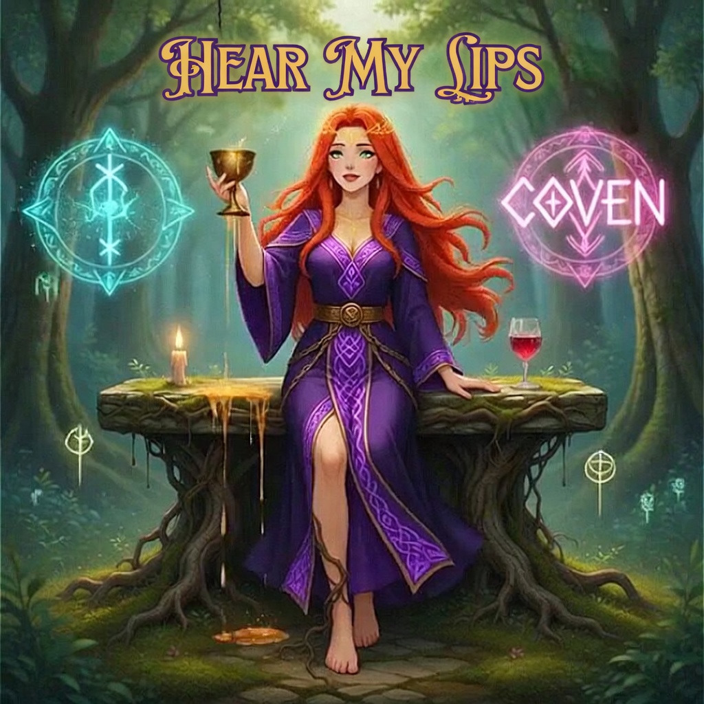 A dark, cinematic fusion of gothic darkwave, EBM, and industrial textures intertwined with Appalachian folk roots, driven by a haunting female gypsy vocalist whose voice shifts between ethereal melody and raw, primal throat singing, The atmosphere feels ritualistic and alive, blending deep pulsing rhythms with organic, earthy tones and sweeping, dramatic accents that evoke both ancient mountain spirits and shadowed mysticism, There’s a constant sense of tension between beauty and danger—seductive, emotional, and powerful—where hypnotic chants, layered vocal harmonies, and rich acoustic elements weave through heavy, mechanical undertones, creating a sound that is both ancestral and futuristic, intimate yet overwhelming, like a spell being cast under a violet-lit sky