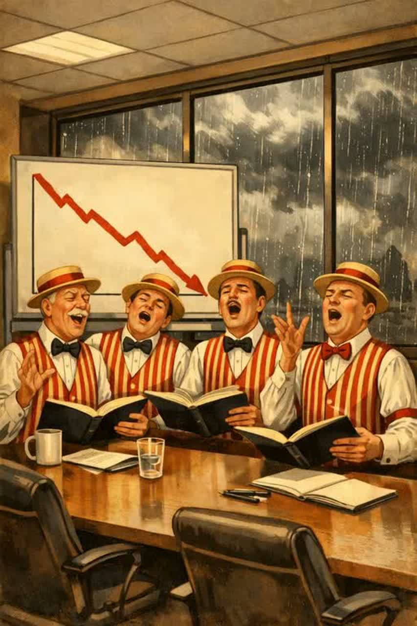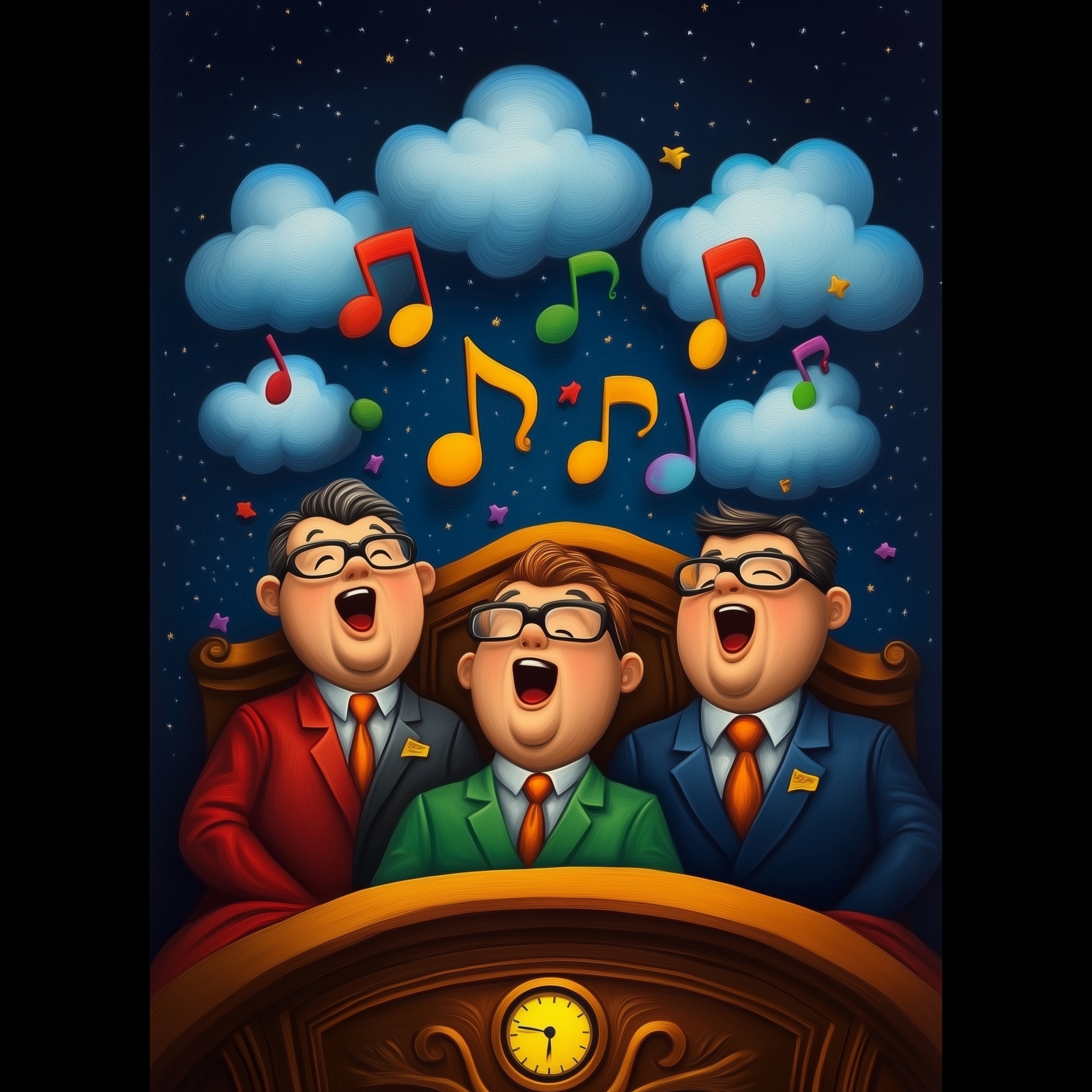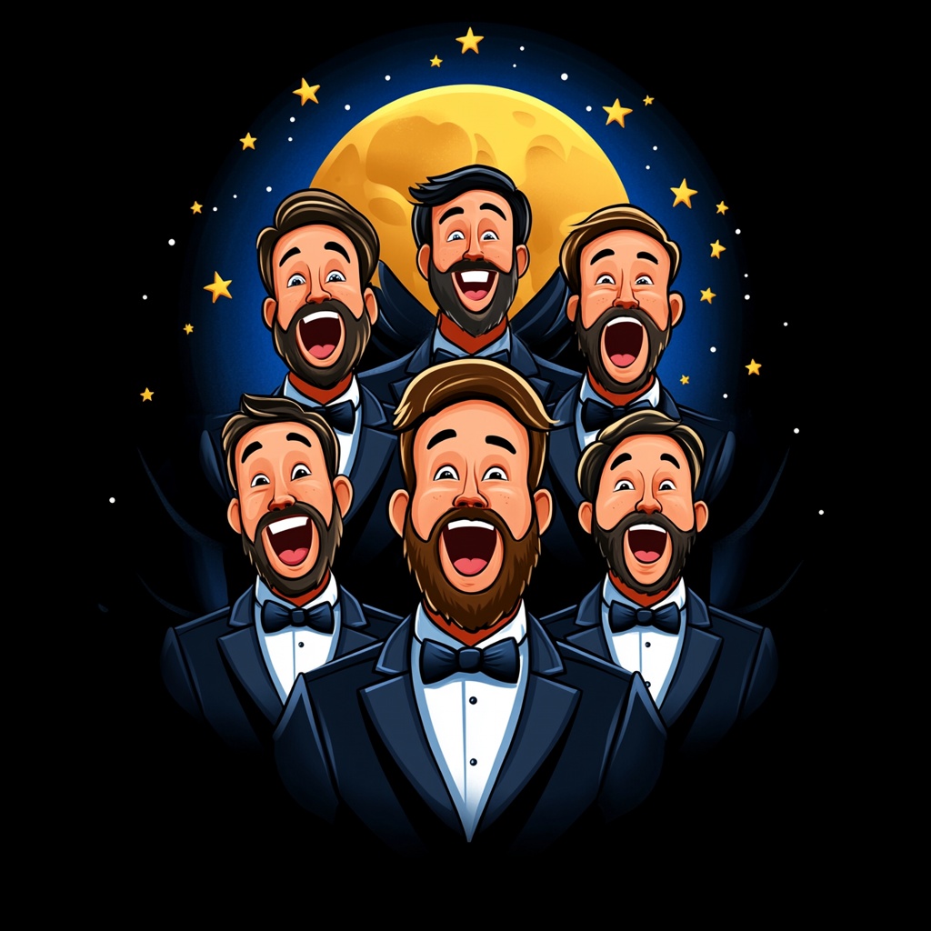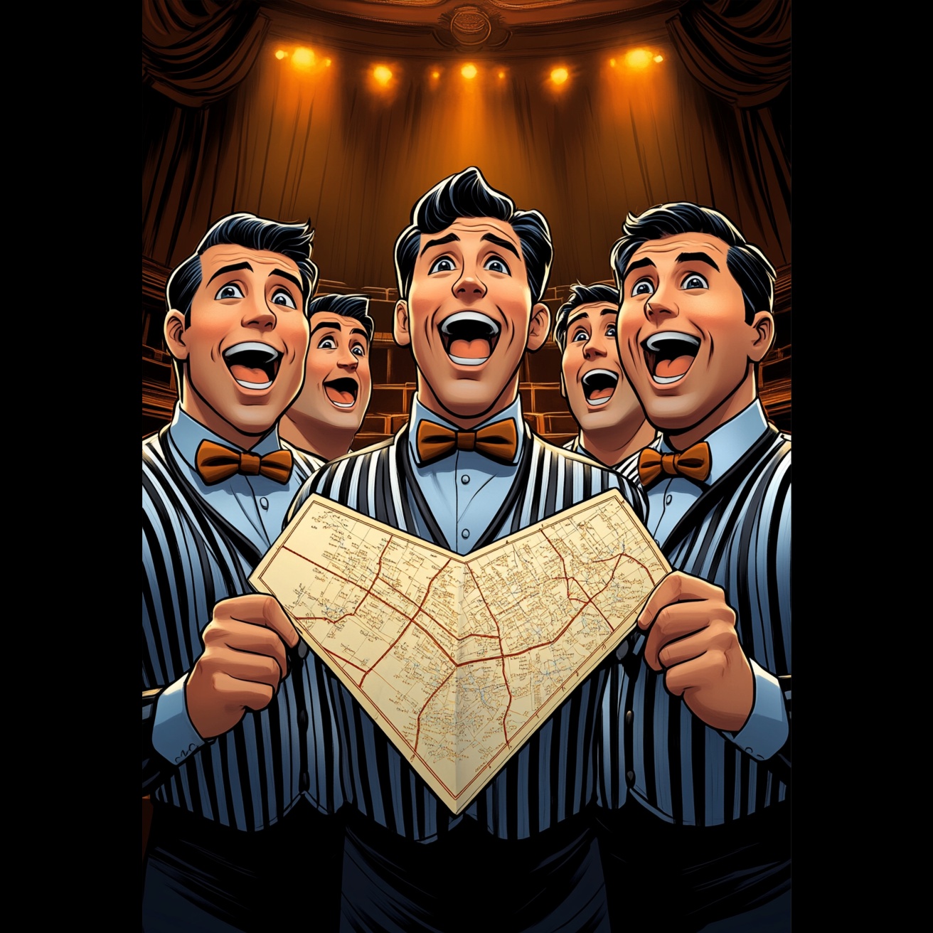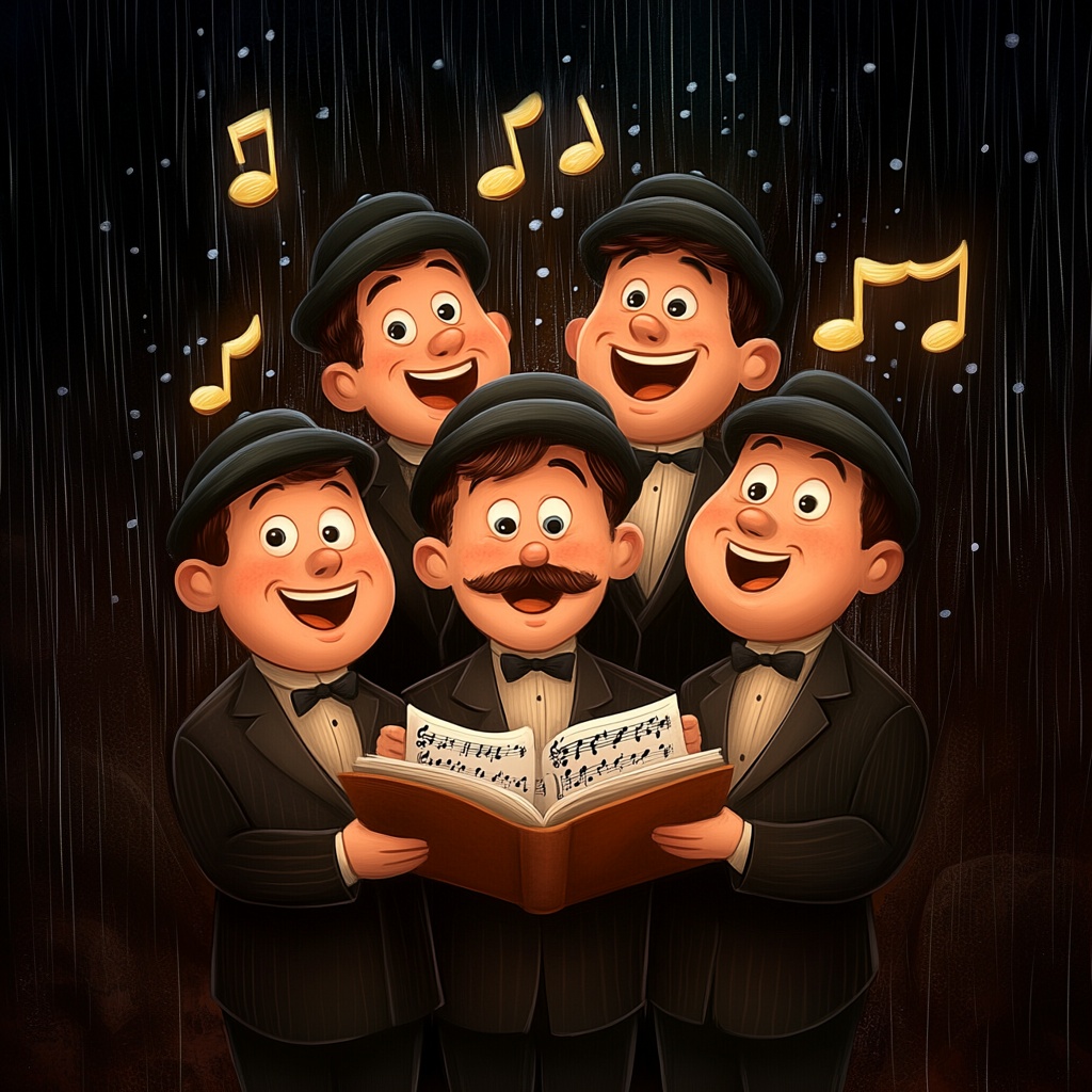 barbershop quartet, close harmony, tempo 120, vintage vaudeville style, male voices, nostalgic comedy, playful dynamics