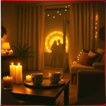 Warm welcoming R&B Christmas intro with soft piano, acoustic guitar, gentle background vocals, cozy atmosphere, spoken and sung male vocal, candlelit mood, family-friendly message of home and comfort, intimate and peaceful opening track