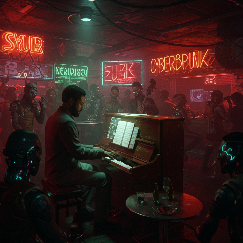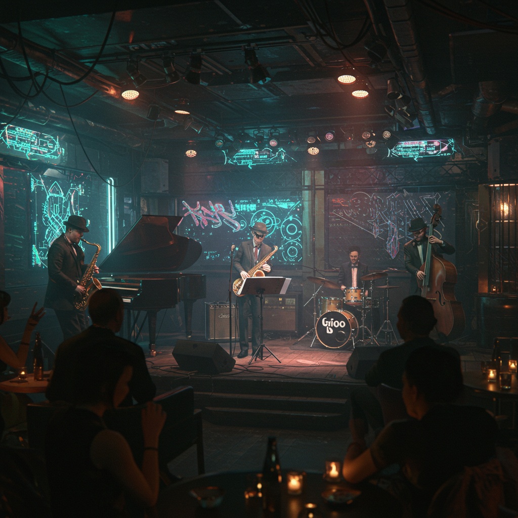 Jazz, Modal Jazz, Free Jazz, Electronica, IDM, Dubstep, Dub, Ridder, Acid jazz, Aggressive, piano, saxophone, bass, drums, cool, Funk Jazz, Funk, Modal Bebap, Experimental, cyberpunk, Psychedelic